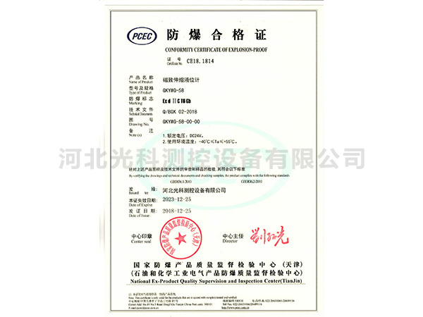 GKYWG-58磁致伸缩液位计防爆证2018-2023